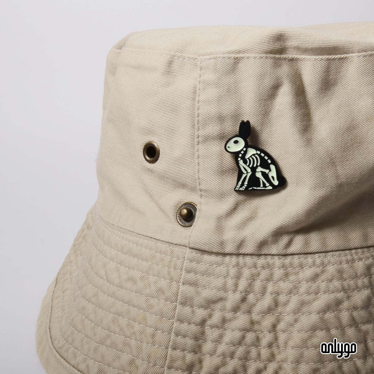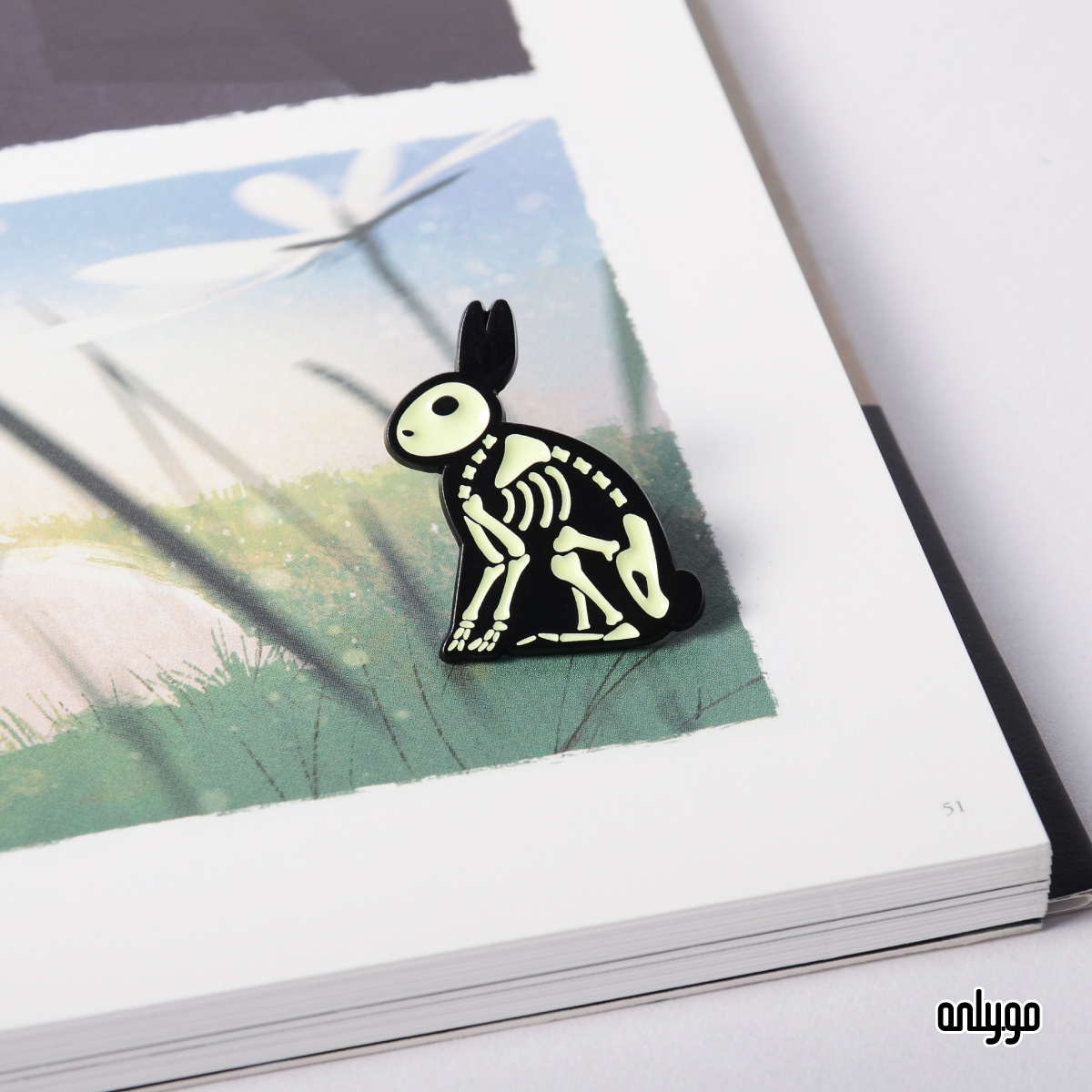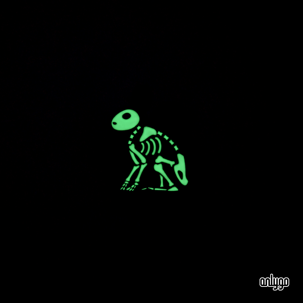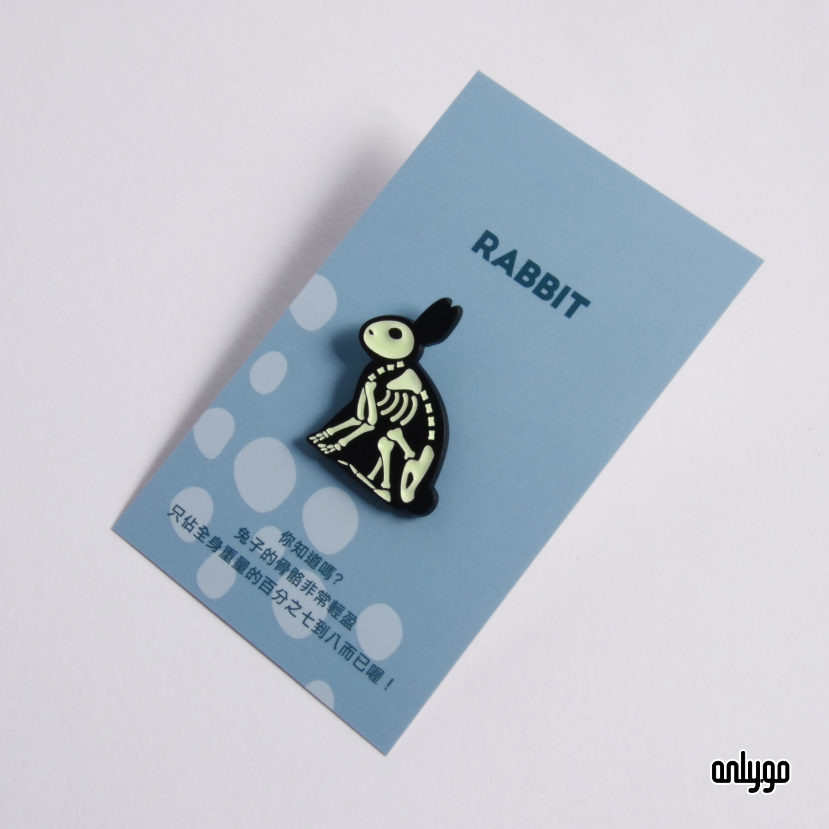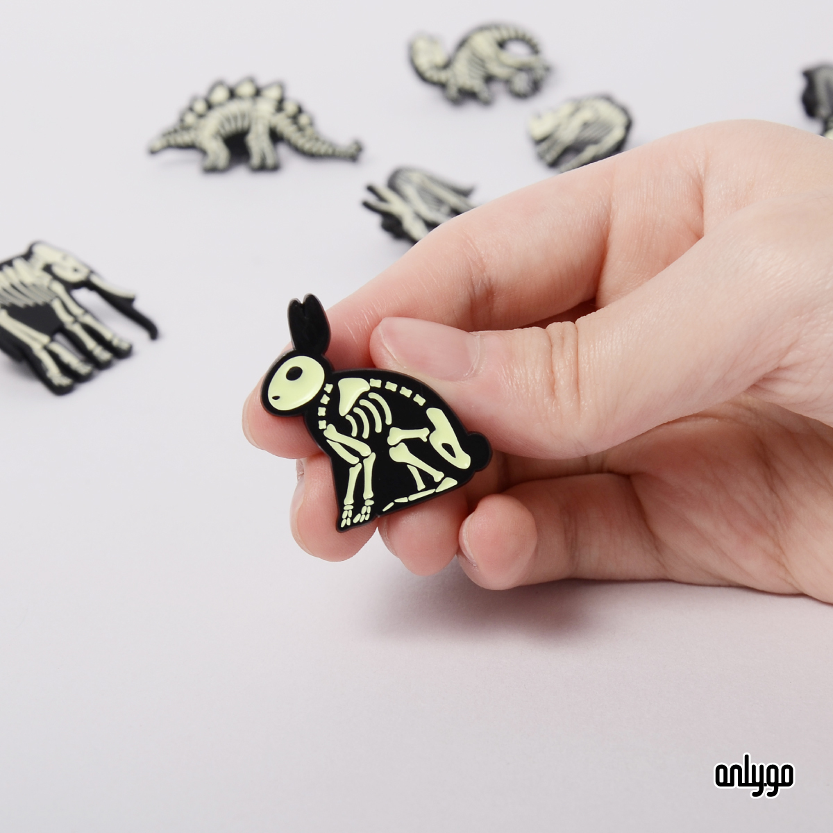 Onlygoのデザイナーは、夜になるとバッジが光るように、夜光顔料を下塗り剤として使用して骨を埋めました。