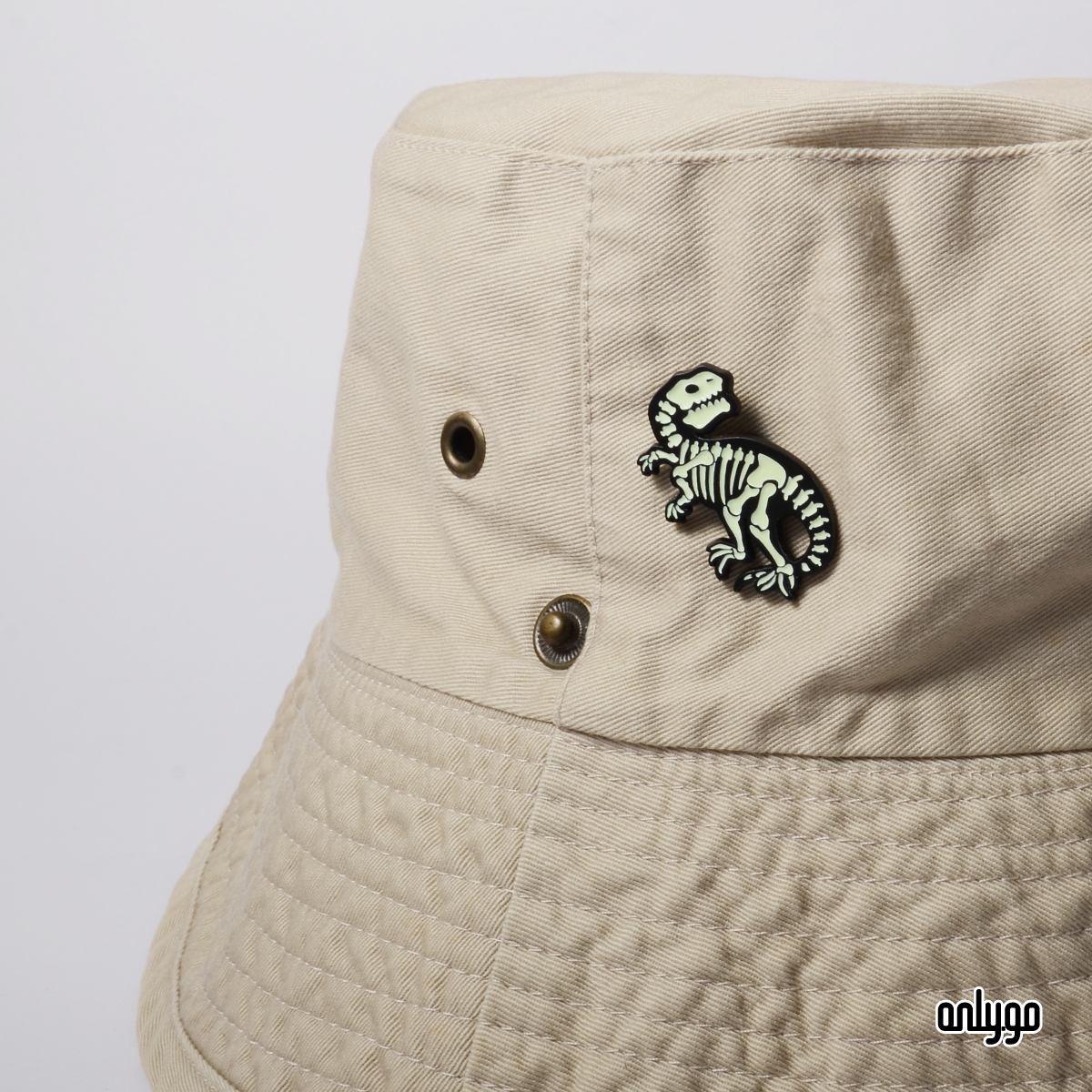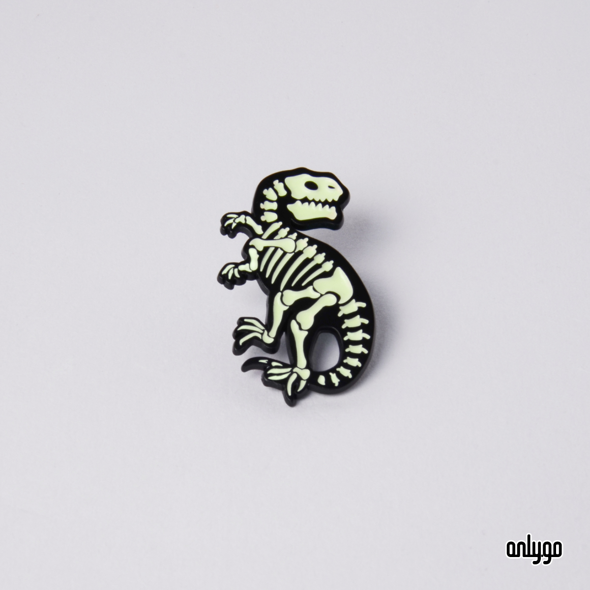 Onlygoのデザイナーは、夜になるとバッジが光るように、夜光顔料を下塗り剤として使用して骨を埋めました。